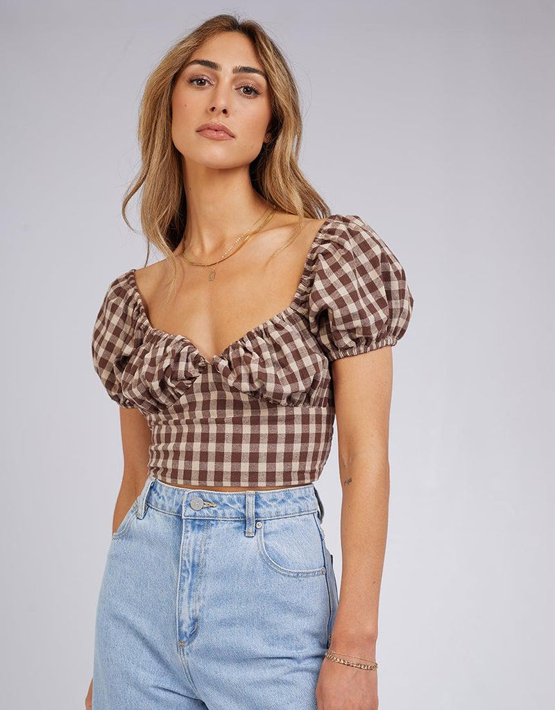 Open back with tie fastening Short balloon style sleeves Gingham Print 100% Cotton Cold Machine Wash