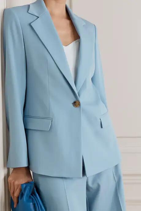 The blazer is tailored from wool-blend twill in a light-blue shade that lends a fresh feel to the otherwise traditional piece. It has smart lapels and lightly padded shoulders for structure, plus a smooth lining to ensure effortless layering.